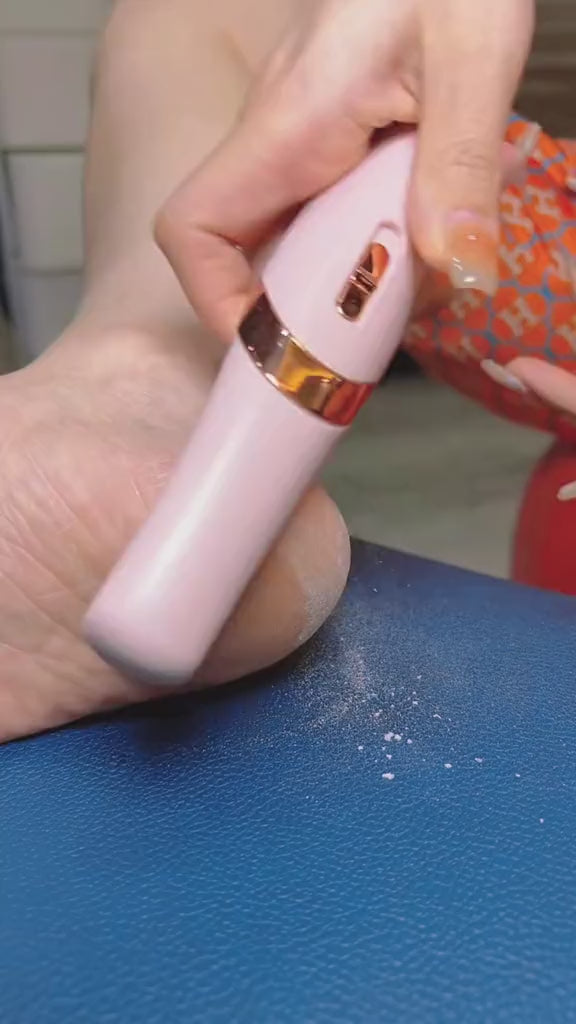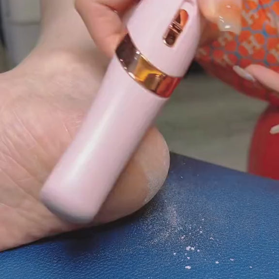 Este removedor de callos tiene un diseño ergonómico tipo varita, ideal para usar en talones, planta, dedos y costados del pie. Elimina la piel dura y seca de forma rápida, segura y sin esfuerzo.